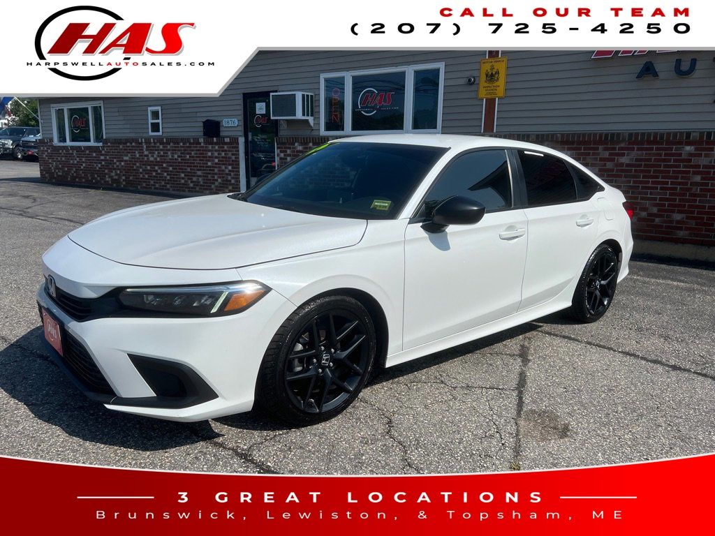 White 2023 Honda Civic Sport FWD CVT 2.0L I4 DOHC 16V i-VTEC Civic Sport, 4D Sedan, 2.0L I4 DOHC 16V i-VTEC, CVT, FWD, White, Black Cloth.